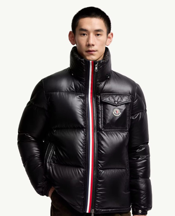 Modèle classique Moncler, la doudoune courte Montbeliard pour homme est conçue en nylon laqué brillant.