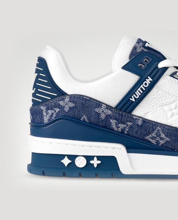 Conçue par Virgil Abloh pour Louis Vuitton, cette sneaker LV Trainer est revisitée pour la saison en denim Monogram et cuir de veau grainé embossé Monogram. Le contraste de couleurs et de matière...