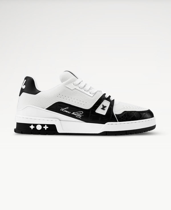 Cette édition exclusive de la sneaker LV Trainer associe du cuir d'alligator précieux au cuir de veau grainé pour offrir une esthétique graphique bicolore. Ce modèle emblématique se distingue pa...